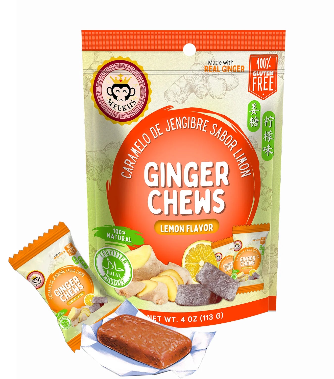 MEEKUS GINGER CANDIES CHEWS LEMON FLAVOR, SOFT CHEWY CANDY 4 OZ (113 G)